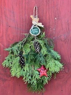 Cedars line the creek bed and fill up much of the acreage here on the farm. We are offering 24" cedar swags and 14" wreaths for the holidays. Specialty orders for garland and other decorations would be considered based on the time and talent needed to complete. Cedar boughs are also available for purchase if you want to DIY.